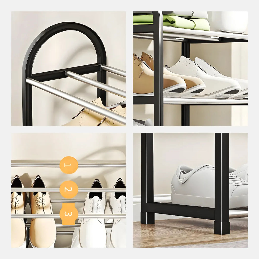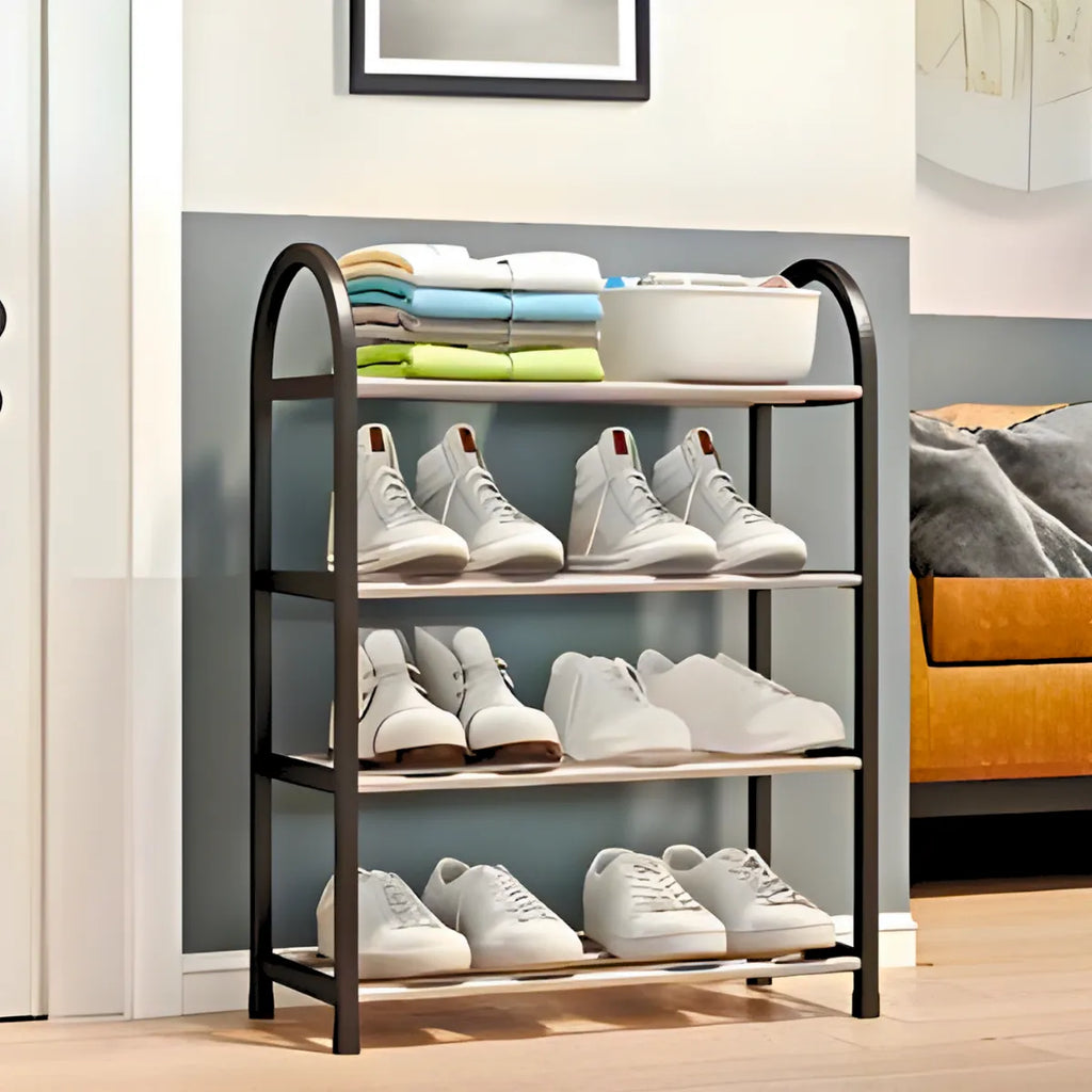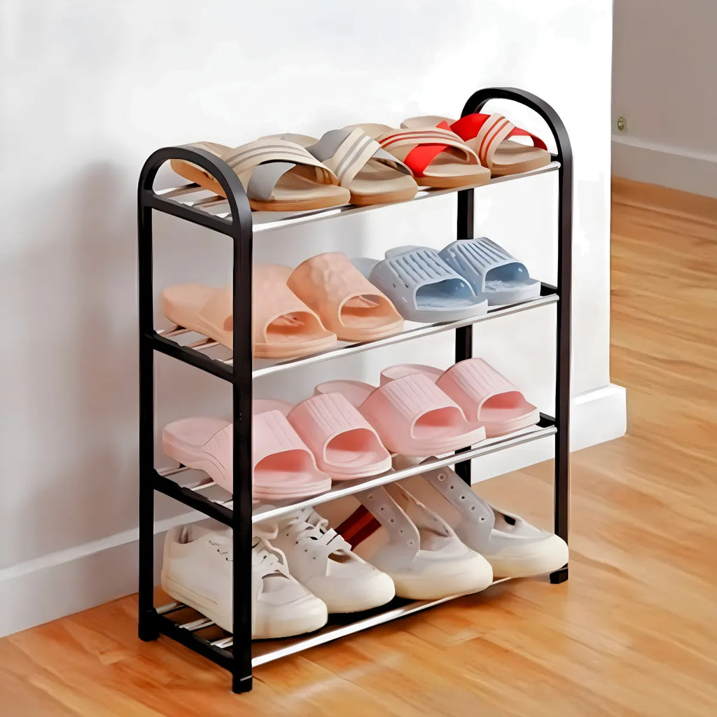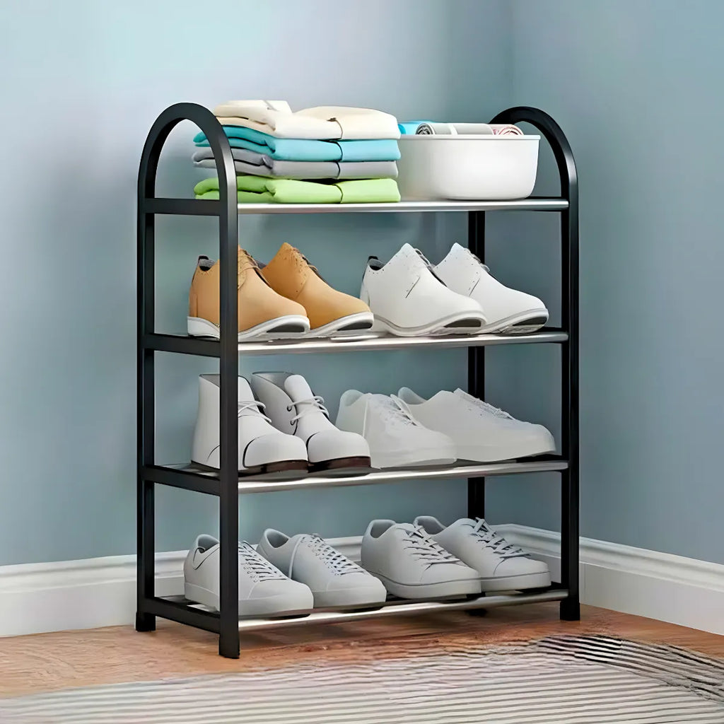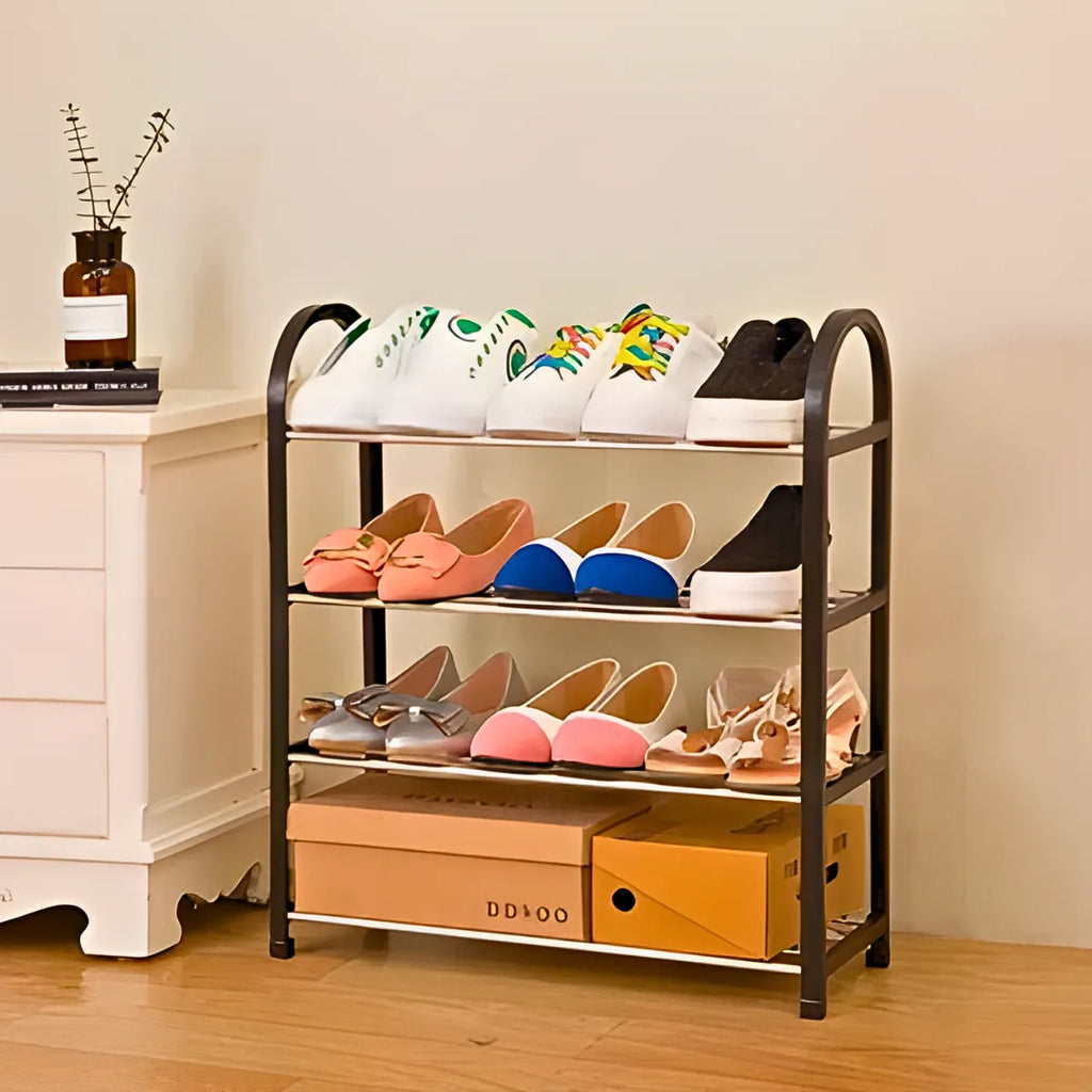 Sapateira Prateleira Organizadora 4 Andares – Compacta, Versátil e Durável Organize seus calçados e objetos com a sapateira multiuso de 4 prateleiras, ideal para ambientes pequenos como apartamentos, closets e áreas de serviço. Com estrutura em metal resistente e plástico durável, ela acomoda até 8 pares de sapatos, além de livros, brinquedos, vasos e muito mais. Destaques do Produto Sapateira compacta e funcional: Aproveita o espaço sem sobrecarregar o ambiente. Fácil montagem: Sistema de encaixe rápido, sem ferramentas. Design moderno e versátil: Ideal para quarto, sala, cozinha ou escritório. Organizador de calçados e objetos: Perfeita para sapatos, bolsas, livros e utensílios. Material resistente: Estrutura firme em plástico e metal para longa durabilidade.